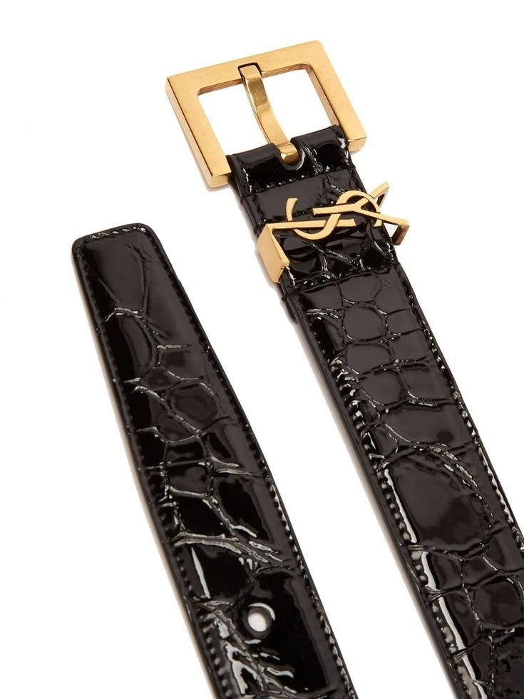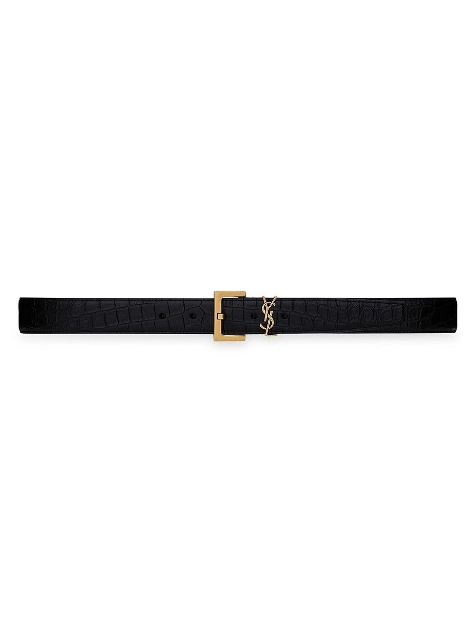 Saint Laurent (YSL) Croc-Embossed Leather Belt | Gold Monogram Loop